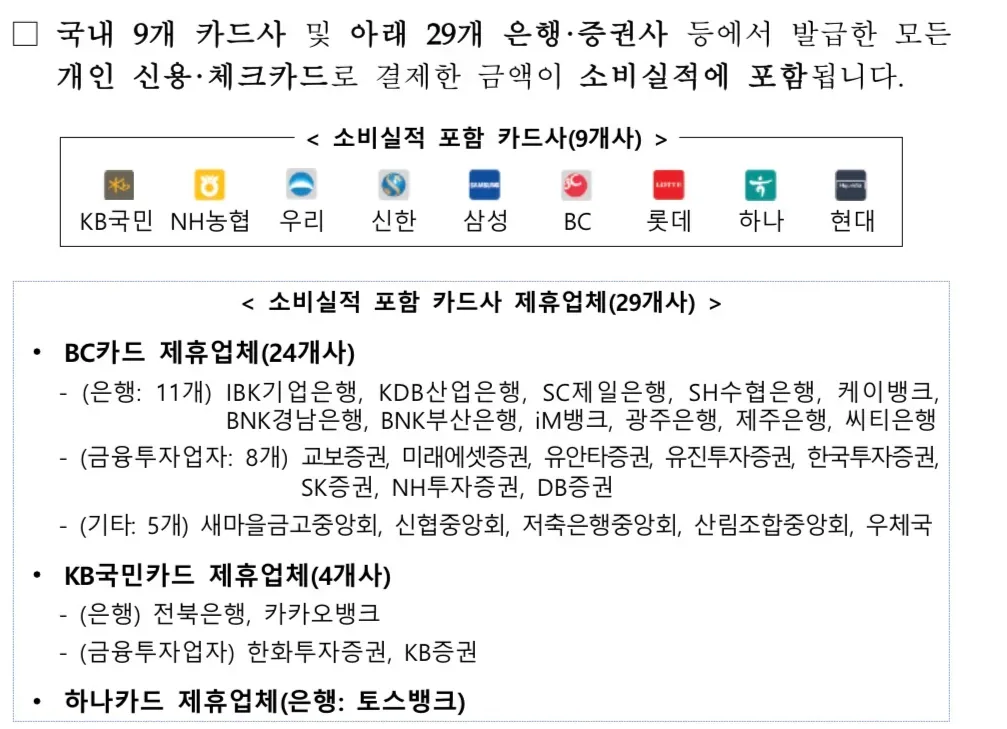 소비실적에 포함되는 카드